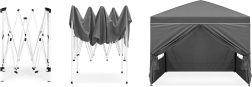 Univerzální zahradní stan MultiGarden je perfektním řešením pro rodinné oslavy, venkovní akce a jako praktické útočiště na terase či zahrádce. Odnímatelné boční stěny nabízejí flexibilní uspořádání prostoru – stan lze nechat otevřený pro lepší průtok vzduchu za horkých dnů, nebo jej plně uzavřít pro vytvoření útulného, chráněného prostoru. To vám umožní snadno se přizpůsobit počasí, příležitosti i osobním potřebám.