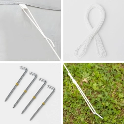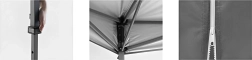 Po každé akci snadno stan složíte pomocí pop-up systému, díky kterému nepotřebujete žádné nářadí. Každá noha má otvory pro ukotvení do země a pro větší stabilitu slouží spojovací lanka. Součástí je také transportní taška z odolného polyesteru 420D pro bezpečné a praktické uskladyňování.
