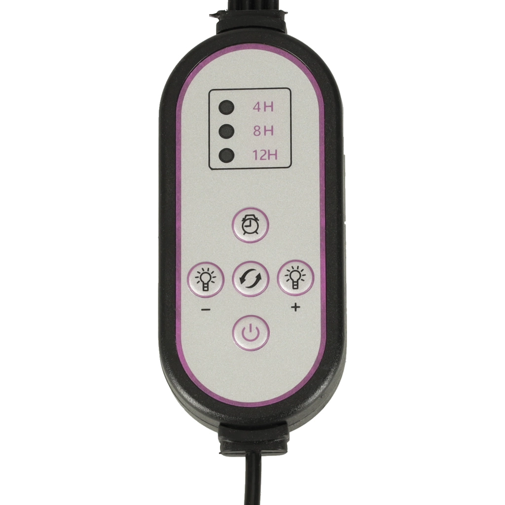 Tato lampa je vybavena 10 úrovněmi jasu, které můžete snadno regulovat. Automatický timer umožňuje nastavení na 4, 8 nebo 12 hodin. Dále disponuje dálkovým RF ovladačem i možností přímého nastavení přes kabel.