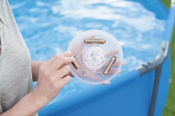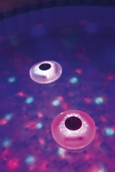 Tato moderní LED lampa je jednoduchá na použití: stačí vložit tři baterie AA (nejsou součástí balení), umístit lampu na hladinu vody a stisknout tlačítko na vrcholu. Nepotřebujete žádné kabely ani připojení k elektrické síti. Navržena tak, aby jemně osvětlovala plochu vody o šířce 2,43 m a hloubce 1,52 m. Automaticky se vypne po hodině bez činnosti.