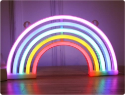 Neonová dekorativní lampička ve tvaru duhy je skvělým doplňkem pro každý interiér. Spojuje estetiku, moderní design a funkčnost, což z ní činí ideální volbu do dětského pokoje, ložnice nebo obýváku.