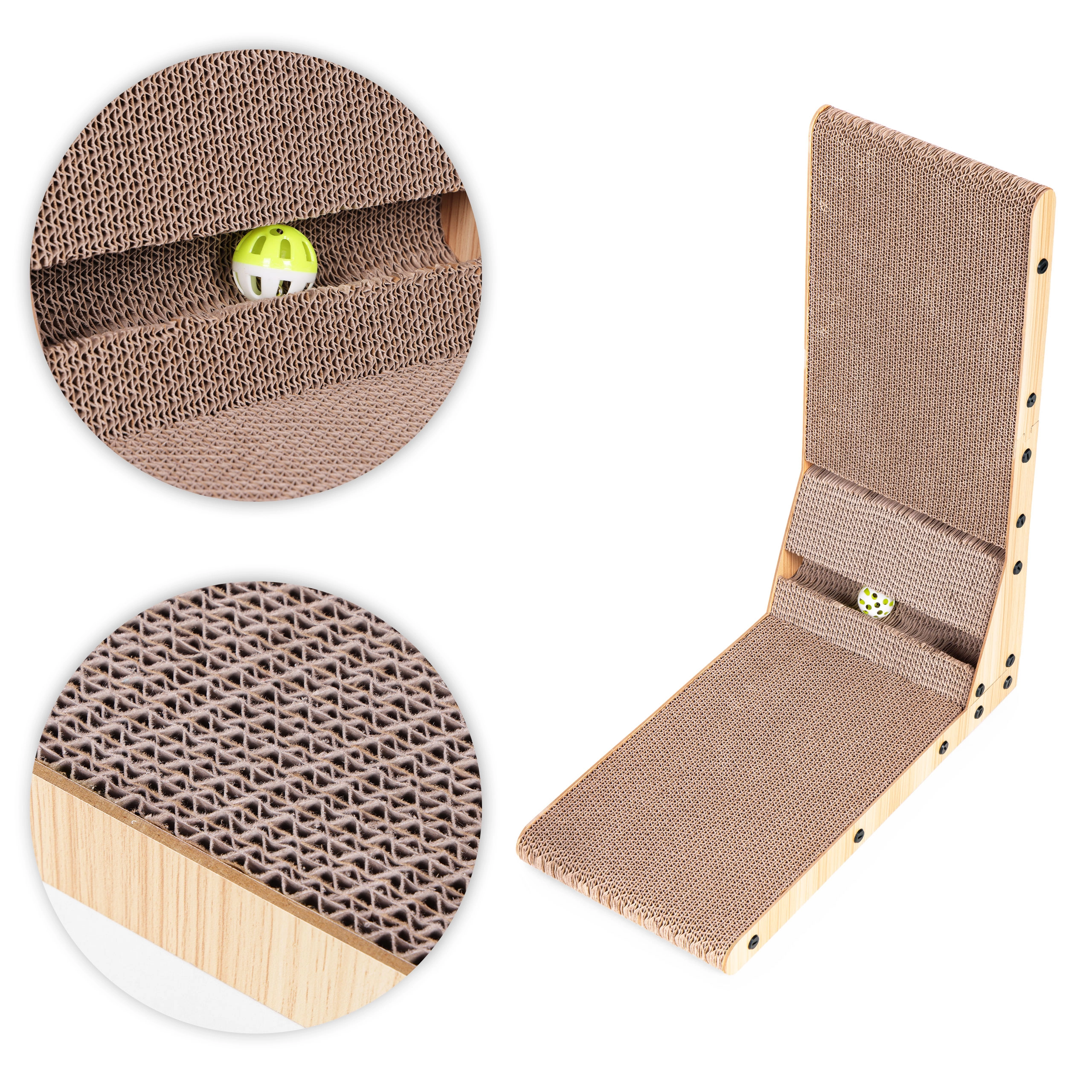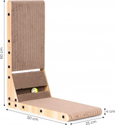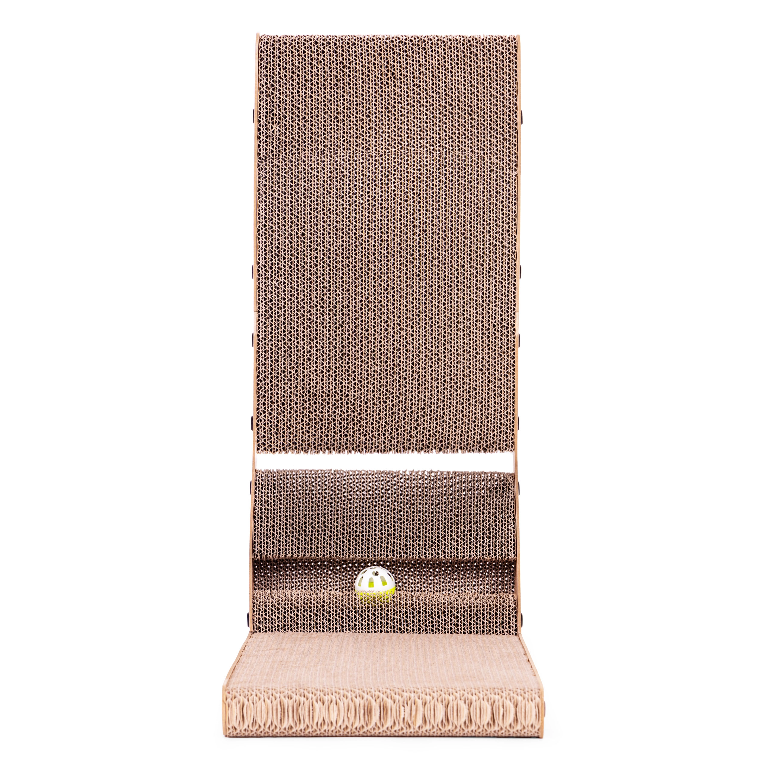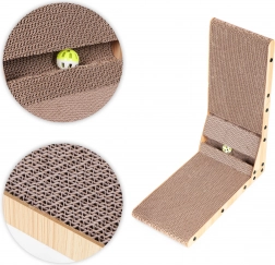 - Škrabadlo je vyrobeno z odolného, vrstveného kartonu, který je ideální pro ostření drápů. Textura kartonu přirozeně láká kočky, stabilita a odolnost škrabadla je zajištěna MDF rámem.