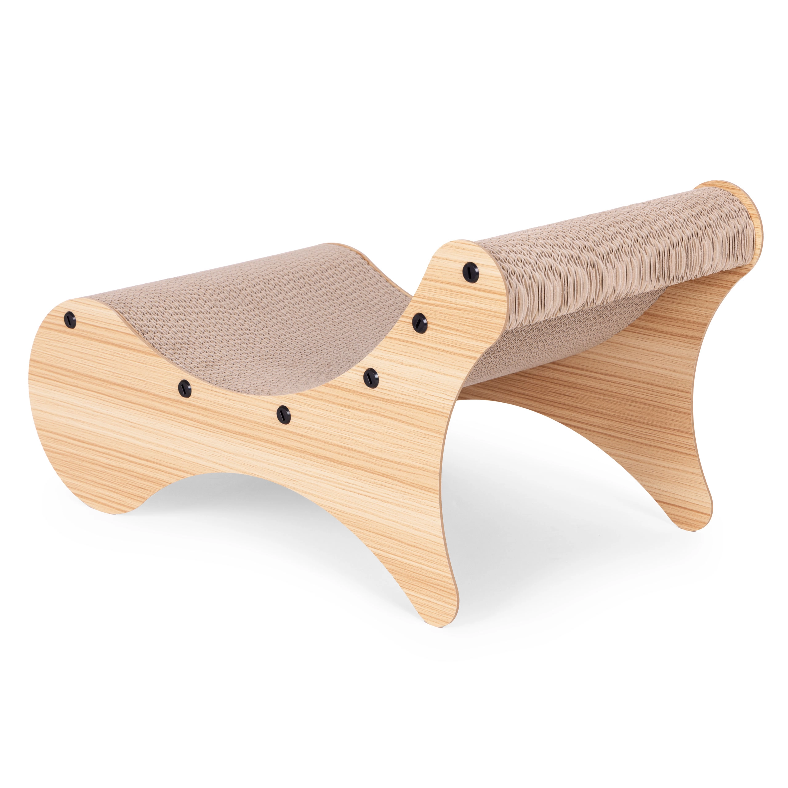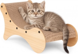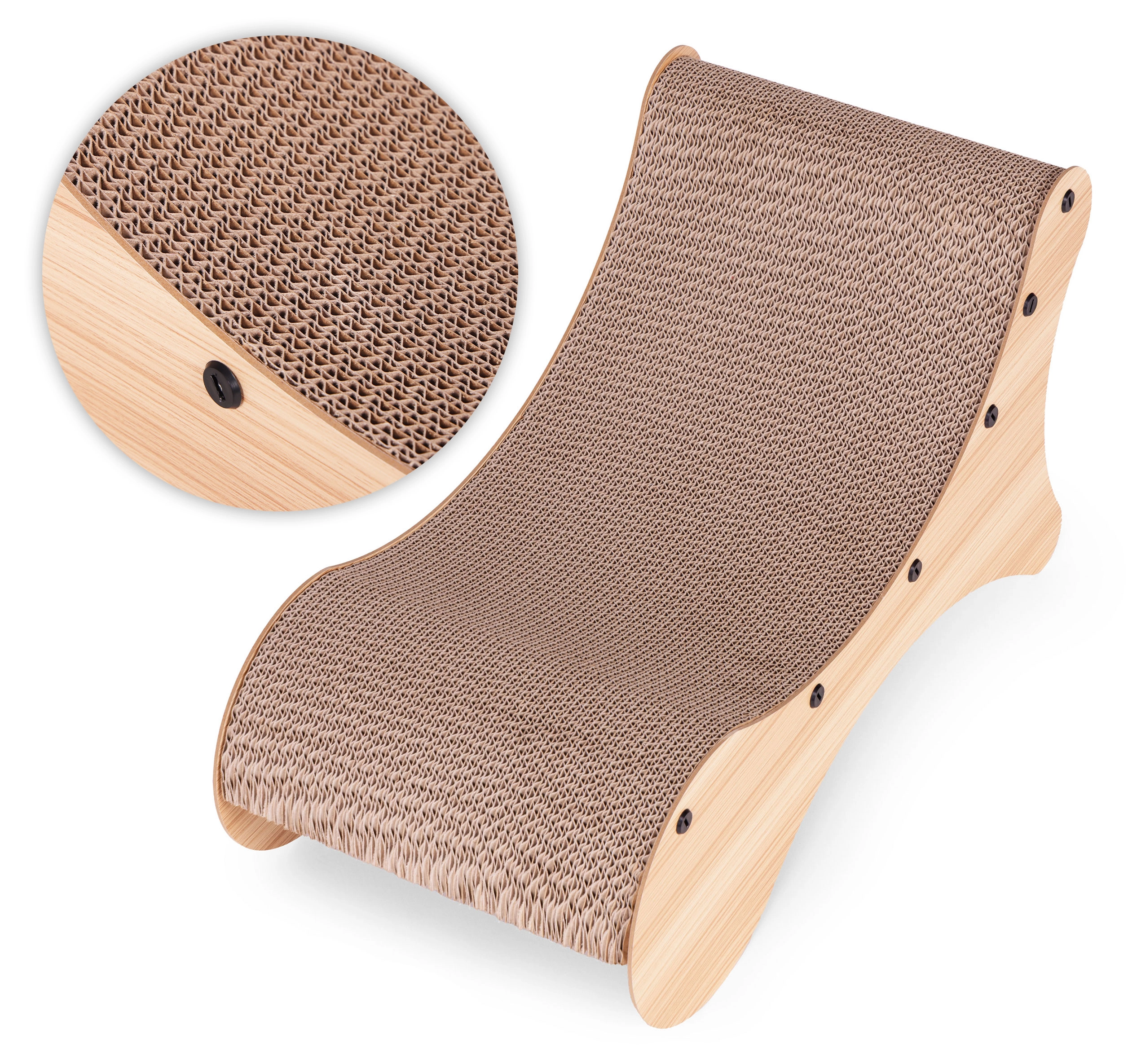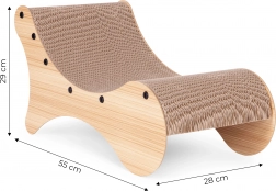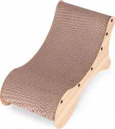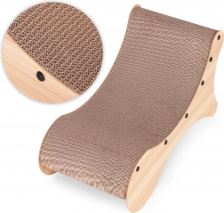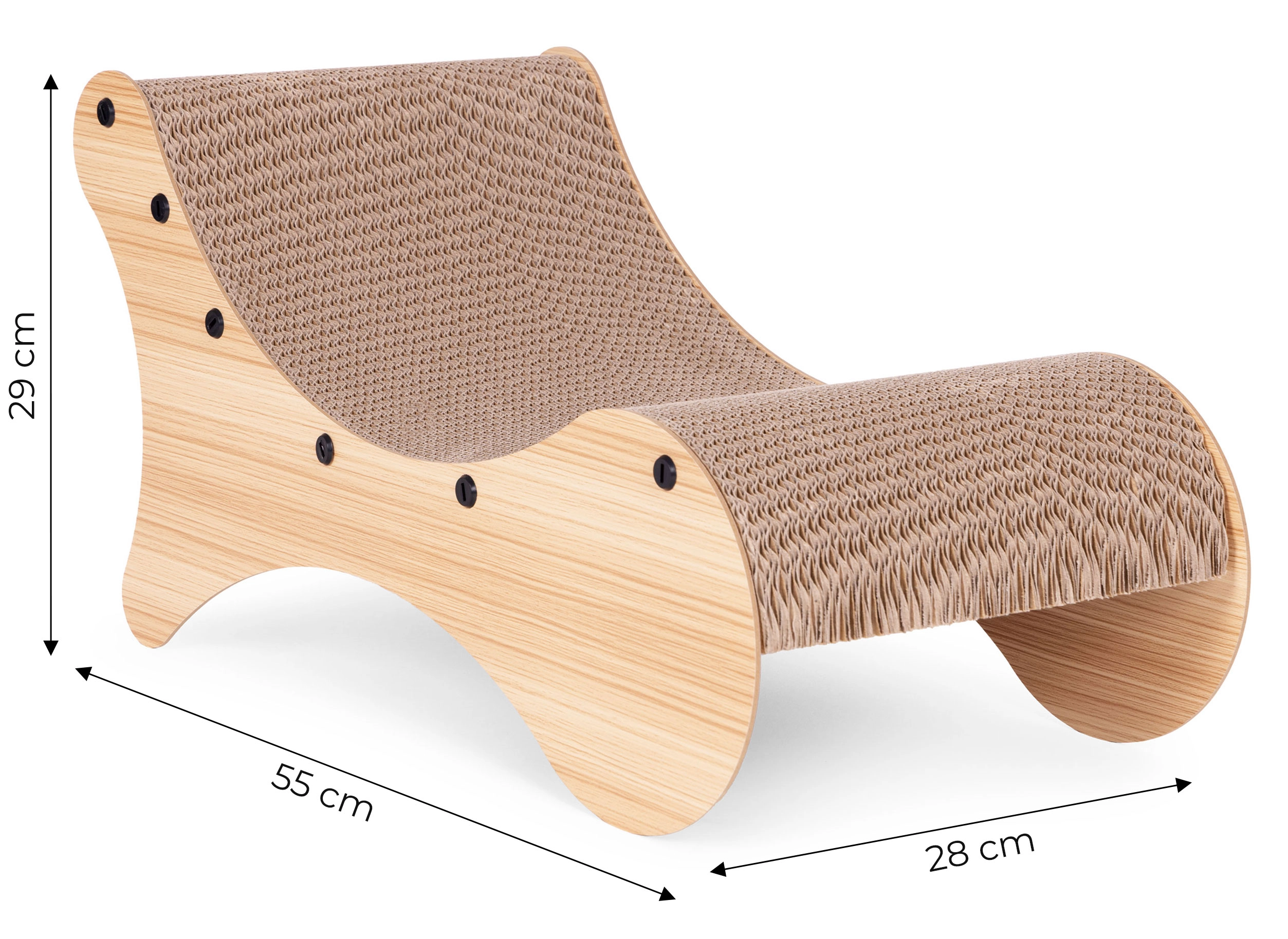 - Škrabadlo ve tvaru lenošky – ideální jako kombinované místo na odpočinek i škrabání drápů. Konturovaný tvar přizpůsobený kočičímu tělu umožňuje maximální pohodlí.