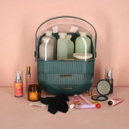 Udělejte si radost s tímto stylovým organizerem na kosmetiku. Dva prostorné šuplíky vám umožní uložit vše potřebné od krémů, přes štětce, až po lesk na rty nebo šperky. Horní polici lze využít jako stojan na kosmetiku. Díky ergonomickému úchytu je lehce přenosný z koupelny na toaletní stolek či jinam.