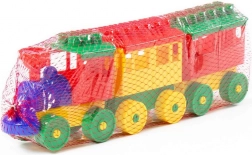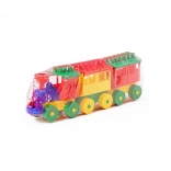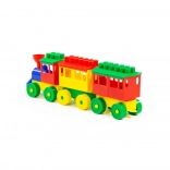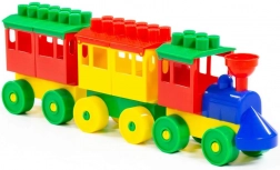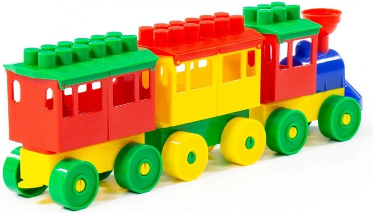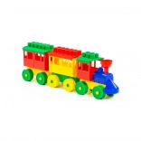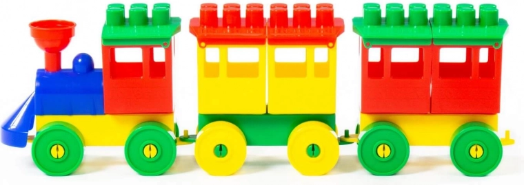 Barevná plastová vláčková sada je ideální pro malé děti od 3 let. Sada obsahuje lokomotivu a dva vagony, což dětem umožňuje rozvíjet kreativitu a jemnou motoriku.