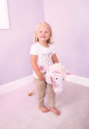 Užijte si hodiny aktivní zábavy s tímto roztomilým koníkem s květinovým vzorem na dřevěné tyči. Ideální pro podporu pohybu a cvičení, když děti zavádějí svého koníka po herně nebo zahradě.