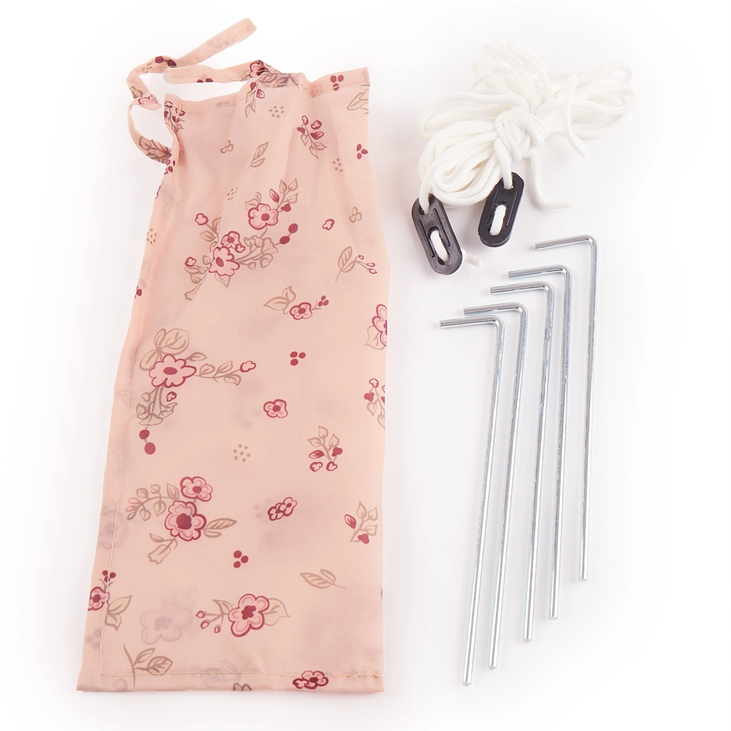 Obsah balení zahrnuje jeden plážový stan, dvě úložné tašky, čtyři stanové kolíky a kotevní lana, což ulehčuje použití i údržbu. Rozměry stanu jsou 130 x 115 x 130 cm a je vyroben ze 100% polyesteru.