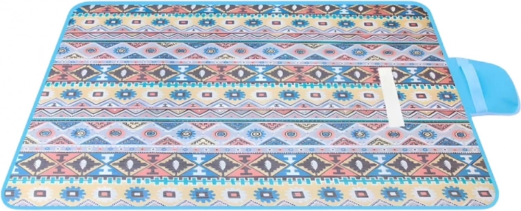 Po použití deku jednoduše složíte do kompaktní tašky o velikosti 31 × 23 × 5 cm se suchým zipem a praktickým uchem pro přenášení. Na výběr jsou dva atraktivní vzory: zelené listy nebo modré geometrické motivy – skvěle ladí s letní atmosférou na pláži i v parku.
