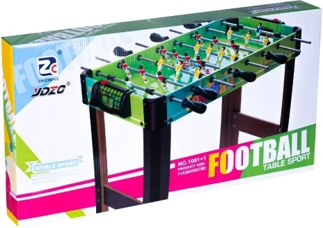 Tento stolní fotbálek je ideální volbou pro rodinnou zábavu i přátelské souboje. Díky kompaktním rozměrům 71 × 36 cm ho snadno umístíte na běžný stůl, přičemž si zachovává prvky velkého fotbalu – kovová táhla s otočením o 360°, brankáři, počítadlo skóre a plynulý chod hráčů.