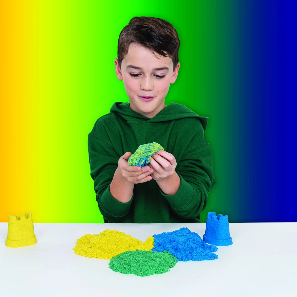 Tato sada kombinuje ikonický písek Kinetic Sand s praktickými nástroji pro řezání, míchání a formování. Vytvářejte realistické duhy, vrstvěte barvy a stavte pestré hrady – písek drží tvar, nelepí se a je příjemný na dotek.