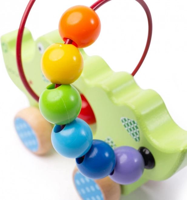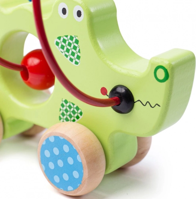Dřevěný krokodýl s korálkovým labyrintem je ideální hračkou pro malé průzkumníky. Jeho barevná konstrukce upoutá pozornost a naučí děti koordinaci pohybů. Tato hračka je vyrobena z kvalitních a bezpečných materiálů, splňujících evropské bezpečnostní normy. Kulečníkový efekt kola zajišťuje, že se krokodýl snadno pohybuje a děti mohou hračku bez problému přemisťovat.
