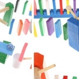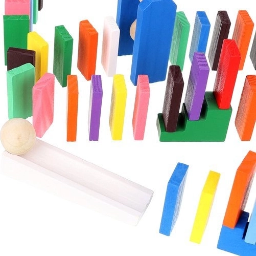 Tato rozsáhlá sada dřevěného domina a kuličkodráhy je ideální pro rodinné stavění, experimenty s řetězovými reakcemi a objevování principů příčiny a následku. Díly mají hladké hrany a jsou barveny bezpečnými barvami, aby byla hra pro děti maximálně bezpečná a zároveň vizuálně podnětná.