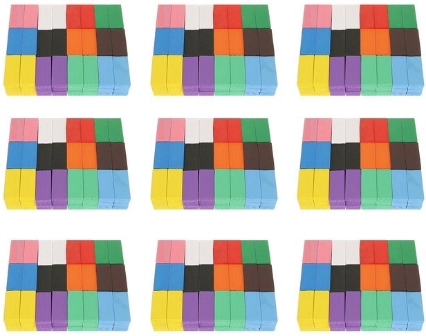 - 1080 kostek, 45 akčních prvků, 1 dřevěná kulička, 2 barevné kuličky, 3 vaky se stahováním