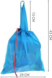Tři síťované vaky se stahováním usnadňují přenášení a ukládání. Dřevěné kostky mají hladké hrany a jsou barveny bezpečnými barvami pro klidnou hru dětí od 3 let.