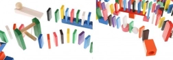 Tato rozsáhlá sada dřevěného domina a kuličkodráhy je ideální pro rodinné stavění, experimenty s řetězovými reakcemi a objevování principů příčiny a následku. Díly mají hladké hrany a jsou barveny bezpečnými barvami, aby byla hra pro děti maximálně bezpečná a zároveň vizuálně podnětná.