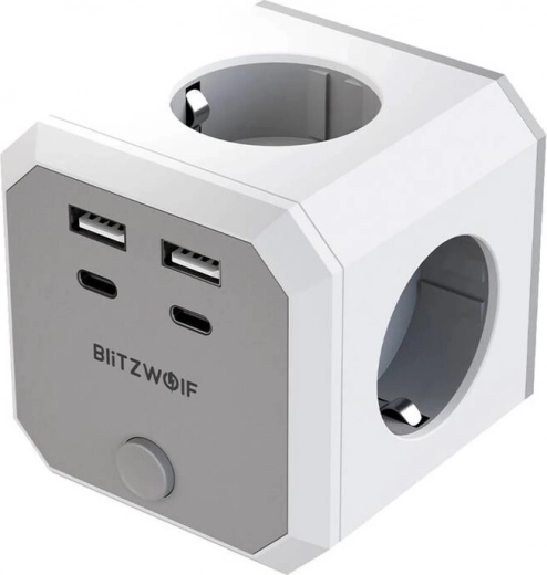 BlitzWolf napájecí kostka umožňuje připojení až osmi zařízení současně. Má čtyři zásuvky AC a čtyři porty USB (2x USB-A, 2x USB-C), což zajišťuje maximální flexibilitu a výkon 4 000 W.