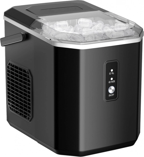 Pohodlný design: Díky pohodlné rukojeti a kompaktnímu designu (29.5 × 29 × 23.5 cm) se výrobník ledu snadno vejde do kufru nebo skříně, a lze ho tak snadno vzít na víkendové výlety, zahradní oslavy atd.