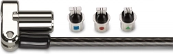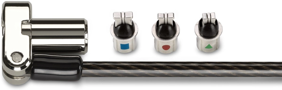 Univerzální zámek 3v1 umožňuje používání s jakýmkoliv bezpečnostním slotem notebooku, ať už je standardní, nano nebo klínový. Snadná výměna zámkových koncovek zajišťuje uživatelsky přívětivé řešení a přiložená páska uchová nevyužité koncovky přímo po ruce.