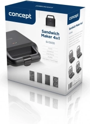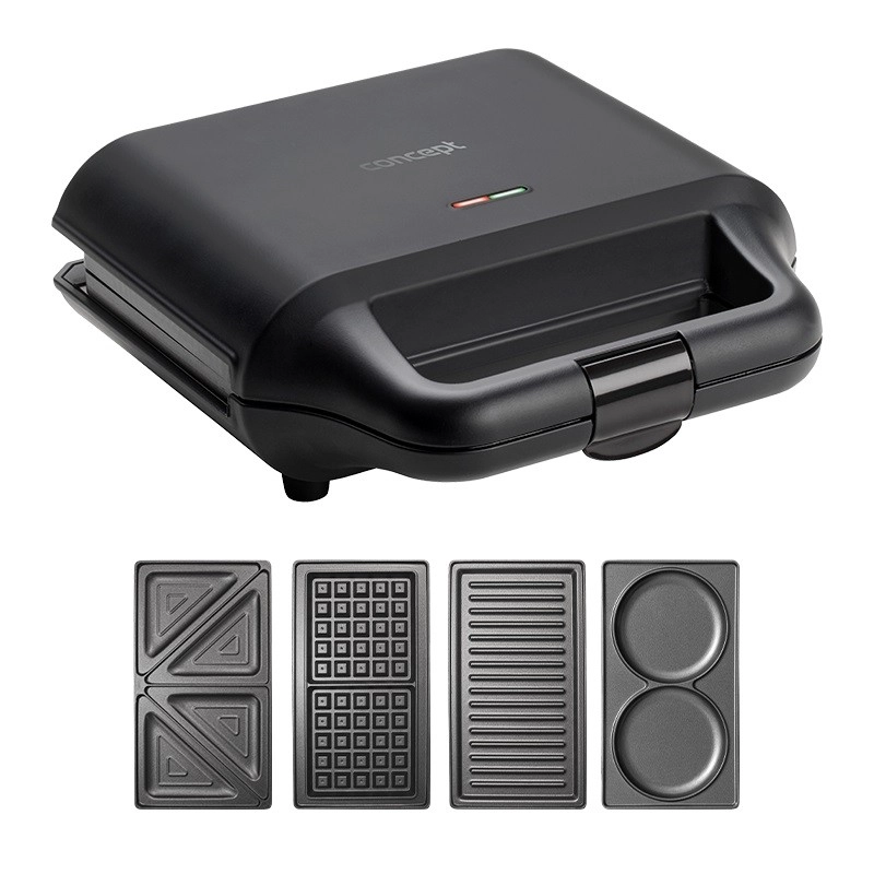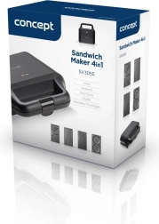Opékač sendvičů 4v1 v elegantním černém designu od značky Concept je praktickým pomocníkem pro rychlou přípravu pokrmů. S jeho pomocí můžete připravit: