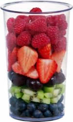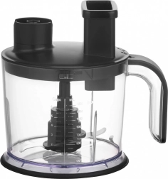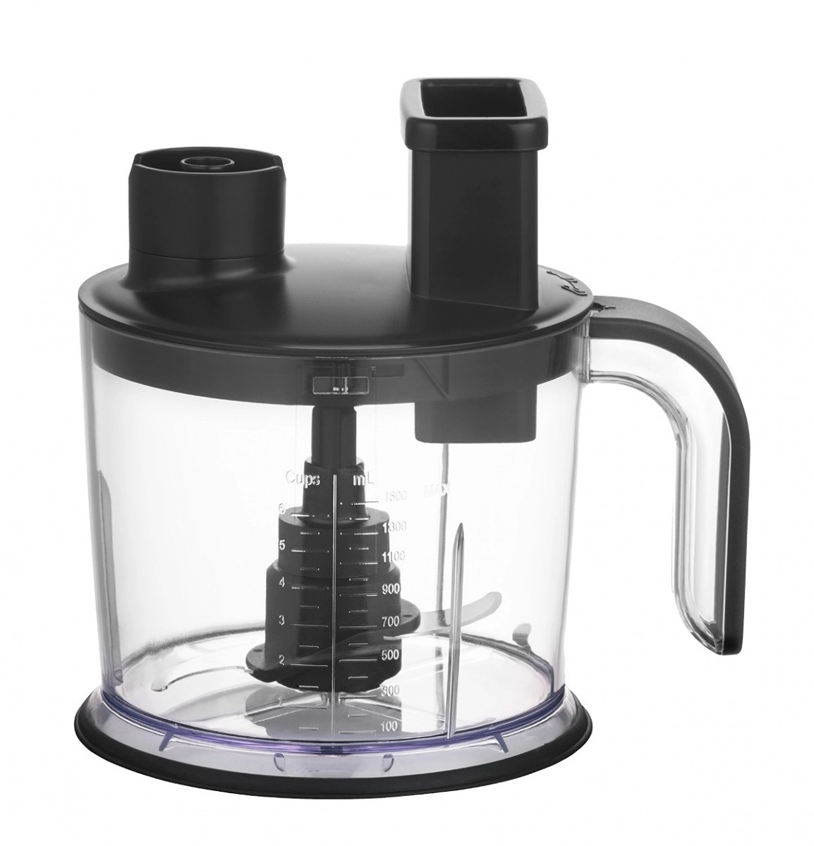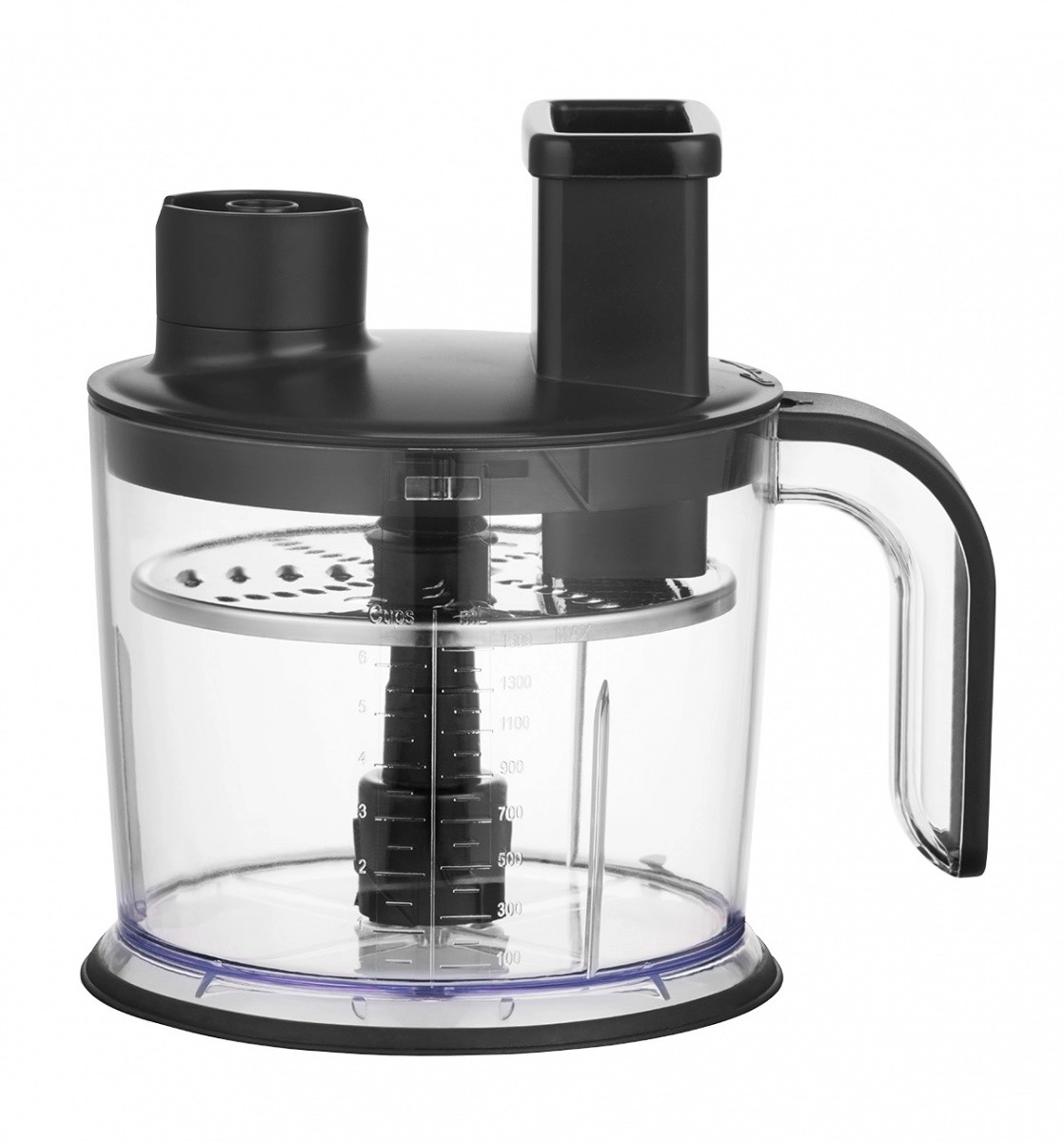 S pochrómovaným odnímatelným nástavcem a nerezovými noži snadno připravíte jemné omáčky, polévky nebo dětskou výživu. Další komponenty jako spirálošelník umožňují zdravé a originální přílohy. Samostatný chopper vám pomůže při sekání ořechů a drcení ledu. Součástí je i smoothie nádoba z tritanu, kterou snadno přeměníte na přenosnou lahev.