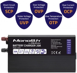 Nabíječka Monolith využívá inteligentní třístupňové nabíjení, které zajišťuje kompletní a rovnoměrné nabití baterií s ochranou proti přebíjení.