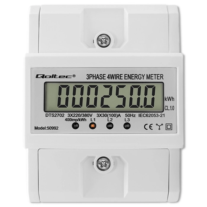 Tento elektronický měřič spotřeby energie umožňuje precizní monitorování využití energie ve třífázových elektrických systémech s napětím 230V/400V při frekvenci 50Hz. LED indikátor signalizuje průběh spotřeby, zatímco LCD displej zobrazuje údaje o spotřebované energii. Měření je prováděno na základě počtu impulzů s frekvencí 400 impulsů/kWh.