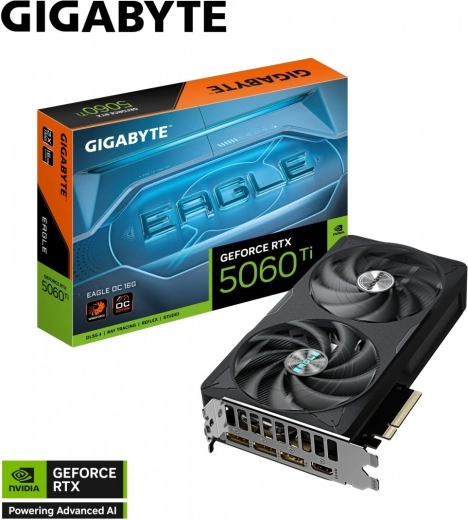 Karta grafická Gigabyte GeForce RTX 5060 Ti Eagle OC představuje špičkovou volbu pro hráče a grafické designéry, kteří hledají nejlepší grafický výkon. Je založena na architektuře NVIDIA Blackwell a využívá technologii DLSS 4.
