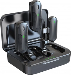 Mikrofony jsou vybaveny praktickými klipy pro snadné upevnění na oblečení. Nabíjecí pouzdro zajišťuje ochranu a prodlužuje dobu provozu, umožňuje čtyřnásobné nabití, takže můžete nahrávat celý den bez starostí o vybití zařízení.