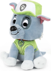 Plyšová postavička Rockyho má své charakteristické detaily: zelenou vestu, čepici s odznakem a přátelský výraz. Hebký povrch láká k mazlení po celý den a večer se postará o klidné usínání. Skvělý dárek pro každé dítě, které miluje TLAPKOVOU PATROLU.