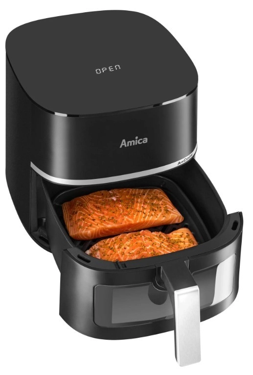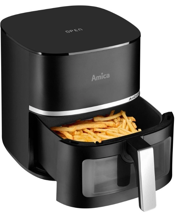 Amica horkovzdušná fritéza nabízí možnost zdravého smažení bez oleje. Díky dotykovému panelu a LED displeji je ovládání snadné a intuitivní.