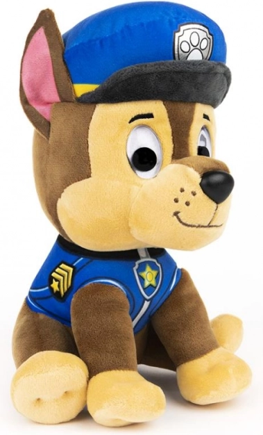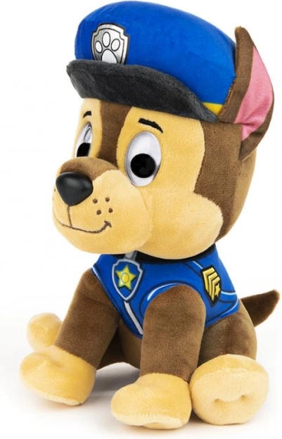 Plyšový pejsek Chase ze seriálu Tlapková patrola má výšku přibližně 23 cm a je oblečen v charakteristické modré uniformě s čapkou a odznakem. Pečlivě zpracovaný design včetně výrazu tváře podporuje kreativní hru a rozvíjí dětskou představivost.