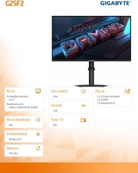 Gigabyte G25F2 nabízí moderní herní design se štíhlými rámy a vynikající kvalitou zobrazení, která uspokojí i náročné hráče.