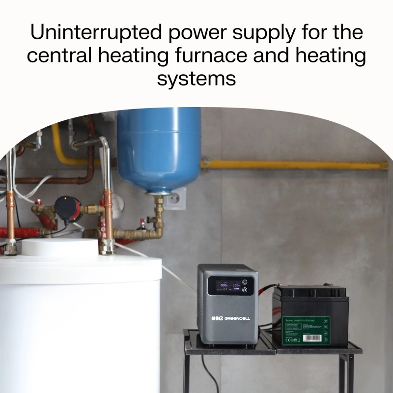 Tento záložní zdroj funguje jak v domácnosti, tak v technických aplikacích. Díky čisté sinusoidě napájí kotle, ledničky, tepelná čerpadla a technická zařízení. Pro fungování vyžaduje kompatibilní AGM baterii.