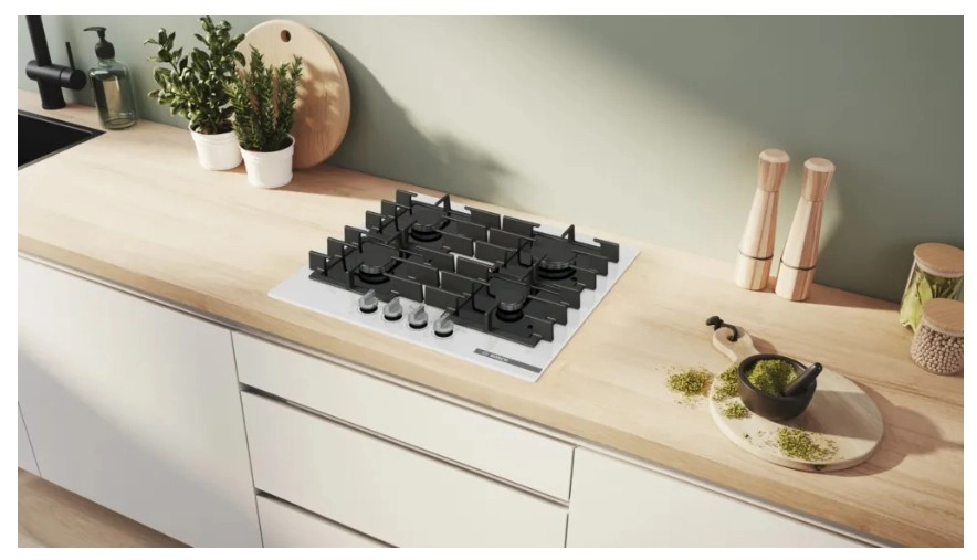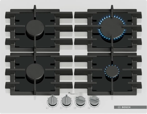 Plná kontrola nad plynovou varnou deskou. S varnou deskou Bosch FlameSelect můžete snadno a přesně regulovat intenzitu plamene, což zaručuje perfektní výsledky vaření. K dispozici je devět úrovní plamene, ideálních pro smažení, dušení i vaření.