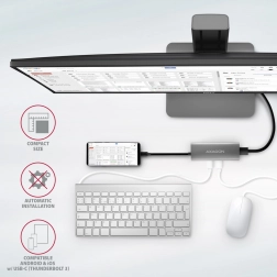 Elegantní a tenké hliníkové pouzdro nejen skvěle vypadá, ale také zajišťuje mechanickou odolnost a pasivní chlazení. Texturovaný povrch nezanechává otisky prstů. Je ideálním doplňkem pro notebooky bez USB-A portů a výstupu videa, umožňující snadné připojení periférií díky funkcím Plug and Play a Hot Plug.