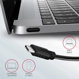 Tento dynamický USB-C hub zahrnuje dva porty USB-A 10Gbps pro připojení externích disků, flash disků, myší a tiskáren. Díky těmto portům můžete také nabíjet mobilní telefony a tablety proudem až 1.5A. Kombinovaný USB-C port umožňuje jak přenos dat (USB 10Gbps), tak nabíjení pomocí Power Delivery.