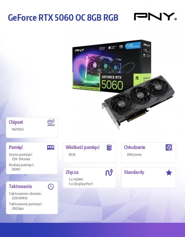Grafická karta PNY GeForce RTX 5060 vás ohromí svou vylepšenou architekturou NVIDIA Blackwell, která přináší bezprecedentní úroveň výkonu a efektivity. Tato karta je ideální pro náročné herní tituly s vysokým počtem snímků za sekundu.