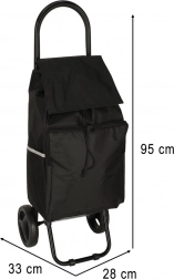 Nákupní vozík je navržen tak, aby zajišťoval komfortní přepravu předmětů. Jeho lehká konstrukce a obratná kolečka zajišťují snadné použití. Nabízí snadné balení nákupů díky stahovací šňůře horní části, která umožňuje uložení předmětů různých velikostí, a termická přední kapsa zajistí převoz chladicích výrobků.