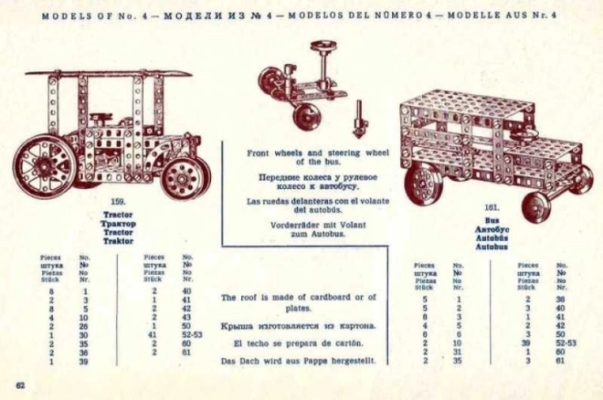 Součástí balení je velká, 94stránková návodová knížka ve stylu 30. let, koncipovaná pro sady MERKUR Classic C03, C04 a C05. Sestavíte až 141 různých modelů – od vozidel a strojů až po technické mechanismy. Ideální dárek pro kreativní děti od 8 let, technické nadšence i milovníky retro designu.