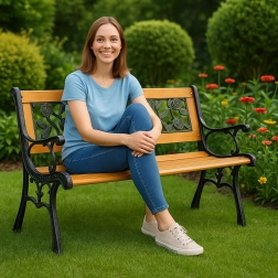 Výjimečný design lavičky kombinuje teplo dřeva s kovovými prvky a dodává jí elegantní nádech. Dřevěné sedadlo s ergonomickým tvarem umožňuje absolutní relaxaci, zatímco lakované topolové dřevo odolá nepříznivým povětrnostním podmínkám. Kovový rám zaručuje stabilitu a bezpečnost, díky čemuž si můžete bez starostí vychutnat okamžiky odpočinku.