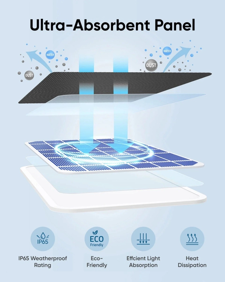 Vysoký výkon 3W panelu zajišťuje, že s několika hodinami přímého slunečního světla denně zůstane vaše kamera na plné baterii po celý den. Díky snadné instalaci můžete panel umístit přesně tam, kde je dostatek slunečního světla. Montážní úchyt s rotací 360° a závěsné šrouby umožňují jednoduché umístění a nastavení.