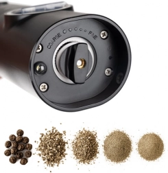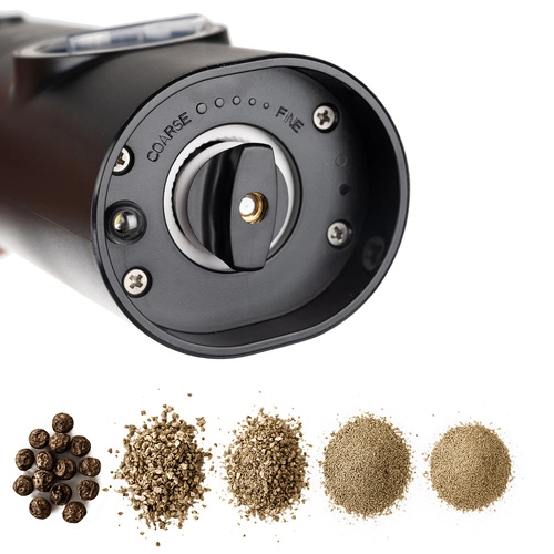 Díky LED osvětlení máte kontrolu nad množstvím koření i při tlumeném osvětlení. Průhledné okénko vám vždy ukáže, kolik koření zbývá. Mlýnky jsou poháněné baterií (4× AAA na jeden mlýnek) a jsou snadno použitelné jedním tlačítkem.