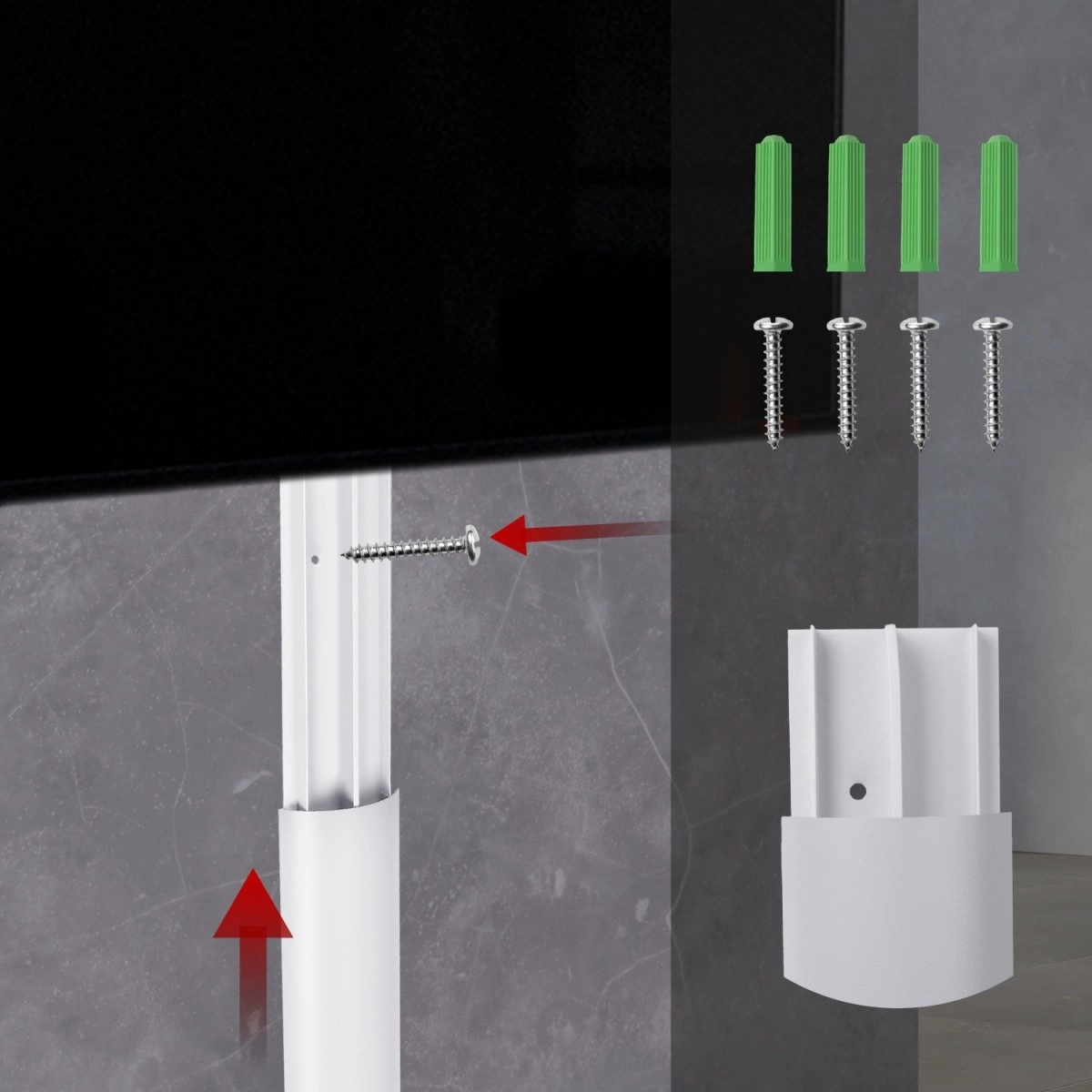 Umožňuje instalaci pomocí samolepícího pásku nebo šroubů a hmoždinek.
