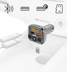 FM Transmitter umožňuje bezdrátový přenos audio signálu z Bluetooth zařízení přímo do autorádia. Připojte svůj smartphone nebo tablet a poslouchejte svou oblíbenou hudbu bez potřeby kabelů.