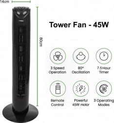 Moderní a stabilní konstrukce o výšce 82 cm umožňuje umístění ventilátoru jak v domácnosti, tak i v kanceláři, aniž by zabíral mnoho místa. Široká základna zajišťuje stabilitu zařízení.