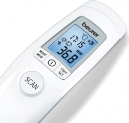 Teploměr lékařský FT90 od společnosti Beurer umožňuje bezkontaktní měření teploty těla, ale i teploty okolí a povrchů. Teplotní hodnoty jsou snadno čitelné díky podsvícenému displeji XL. Pro pohodlí uživatele jsou výsledky doplněny emotikony.
