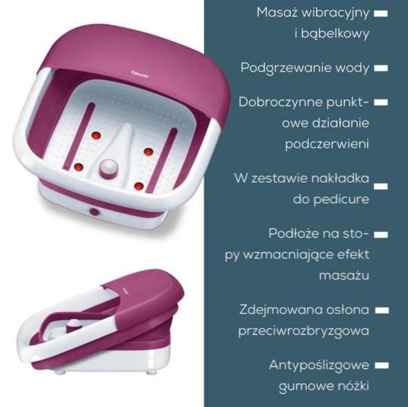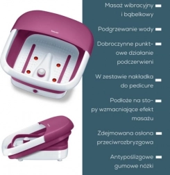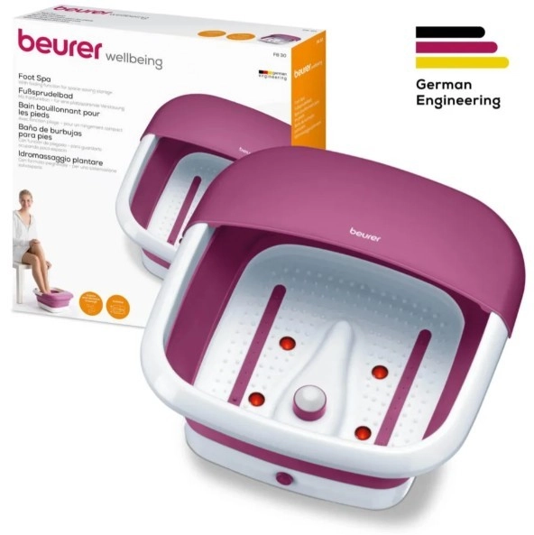 Relaxační vanička pro vodní masáže nohou od Beurer kombinuje funkce pedikúry, vibrační masáže a udržuje teplotu vody, což poskytuje úlevu a regeneraci unaveným nohám.