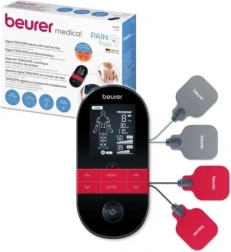 Zařízení Beurer EM 59 umožňuje transkutánní elektrickou stimulaci nervů (TENS) pro úlevu od bolesti bez léků, elektrickou stimulaci svalů (EMS) pro svalový trénink a regeneraci, masážní funkci a program ohřevu.