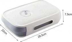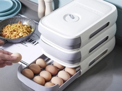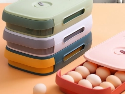 Elegance a účelnost se snoubí v tomto kompaktním a modulárním organizéru na vejce. Díky hladce výsuvné zásuvce je přístup k vejcím rychlý a pohodlný. Stohovatelné ploché víko umožňuje ušetřit místo a kontrolovat počet vajec díky praktickému bočnímu okénku.