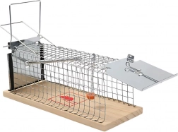 Tato kovová past je navržena pro bezpečné a účinné odchytávání malých škůdců bez nutnosti použití jedů. Je vyrobena z ocelového drátu a dřevěné základny, což poskytuje odolnost a bezpečnou manipulaci.